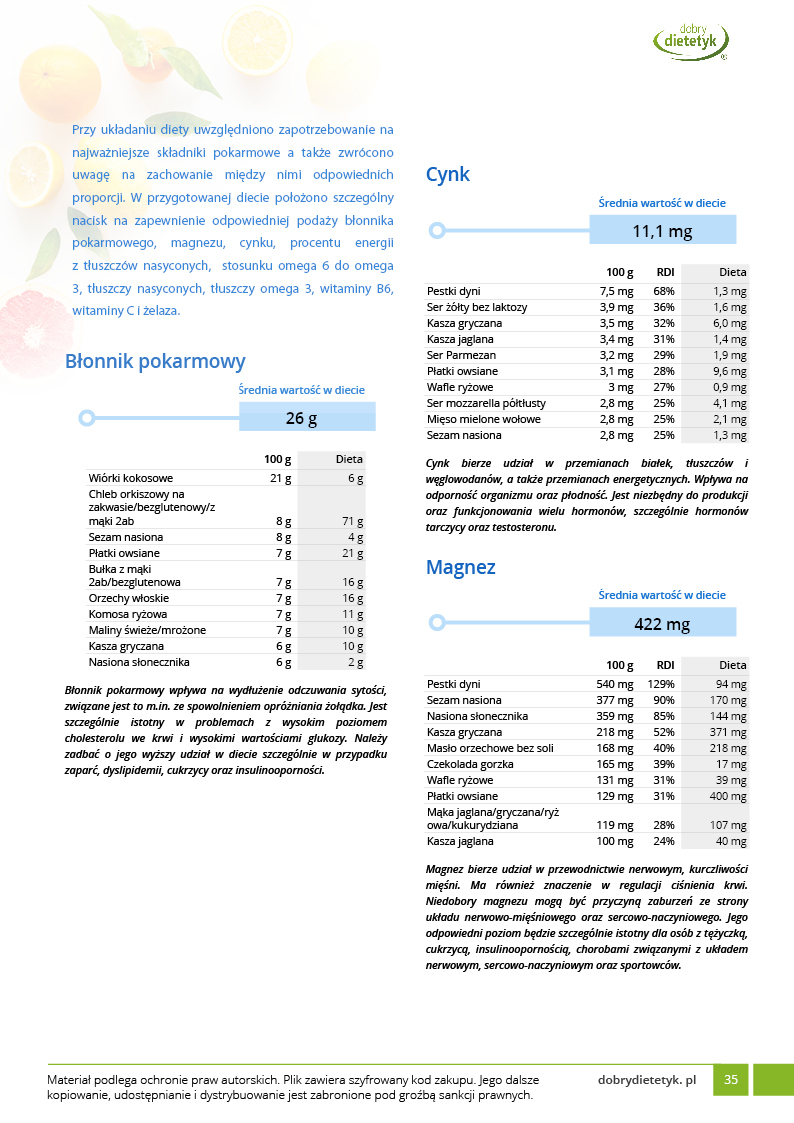 Dodatkowo do opracowanego planu dietetycznego otrzymasz atrakcyjnie przygotowane ciekawostki i wiadomości żywieniowe, które mam nadzieję pozwolą Ci zrozumieć wiele spraw związanych z nurtującym Cię problemem, a także przyczynią się do zwiększenia ogólnej wiedzy żywieniowej.