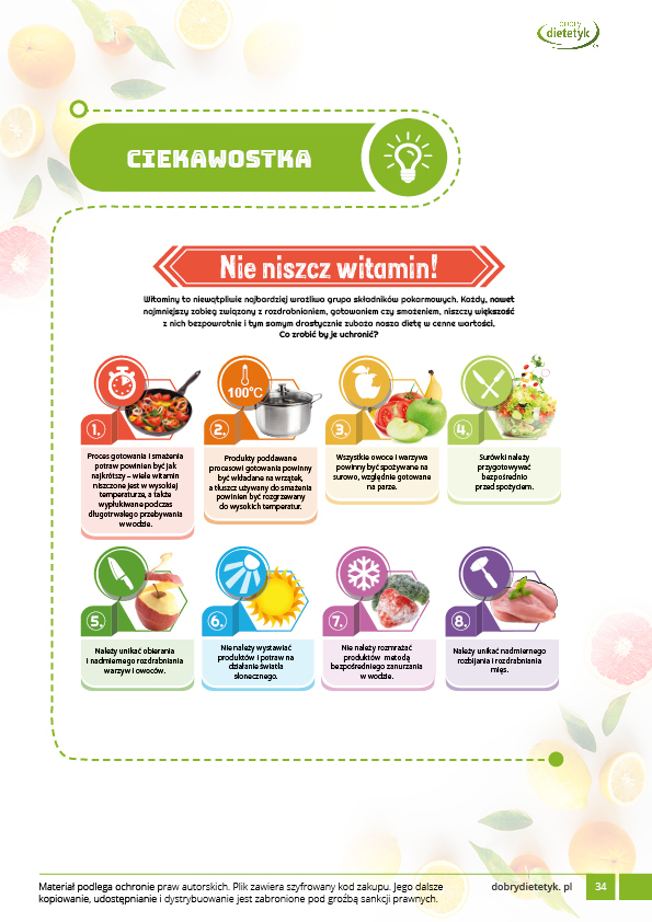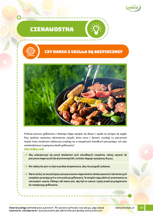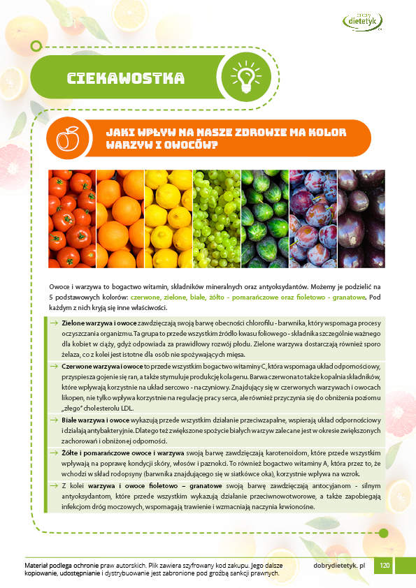 Dodatkowo do opracowanego planu dietetycznego otrzymasz atrakcyjnie przygotowane ciekawostki i wiadomości żywieniowe, które mam nadzieję pozwolą Ci zrozumieć wiele spraw związanych z nurtującym Cię problemem, a także przyczynią się do zwiększenia ogólnej wiedzy żywieniowej.