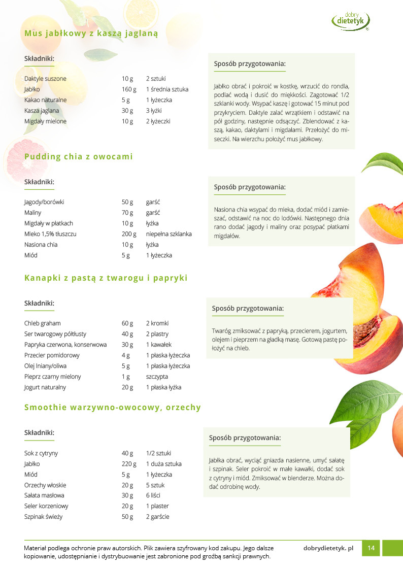 w formie precyzyjnych jadłospisów wielodniowych (na każdy dzień miesiąca jest opracowany osobny jadłospis). Tutaj nie musisz zastanawiać się co zjeść każdego dnia, gdyż będziesz mieć dokładnie wszystko rozplanowane.