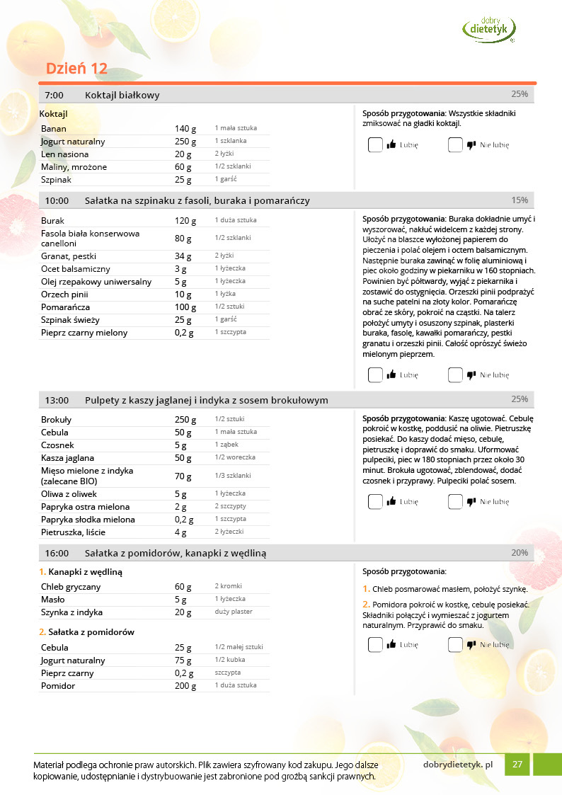 Obok szczegółowego planu dietetycznego otrzymasz również praktyczny poradnik korzystania z opracowanego planu dietetycznego.