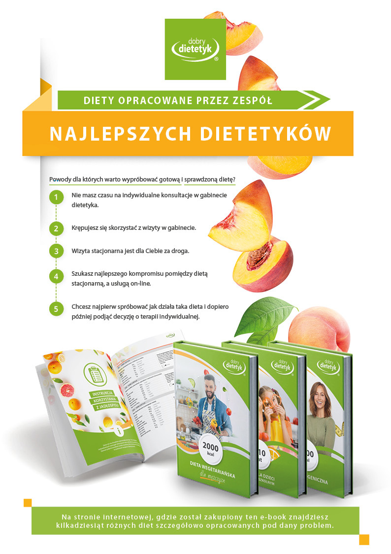 Dodatkowo do opracowanego planu dietetycznego otrzymasz atrakcyjnie przygotowane ciekawostki i wiadomości żywieniowe, które mam nadzieję pozwolą Ci zrozumieć wiele spraw związanych z nurtującym Cię problemem, a także przyczynią się do zwiększenia ogólnej wiedzy żywieniowej.