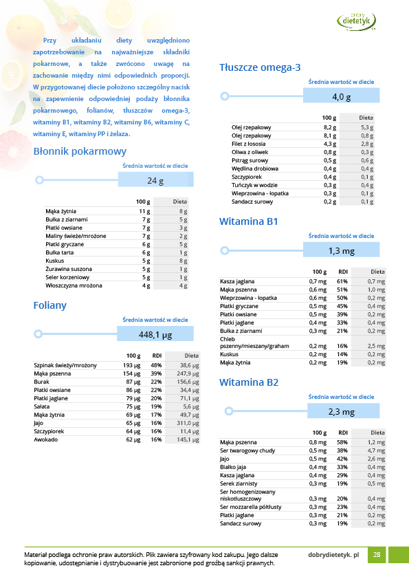 Dodatkowo do opracowanego planu dietetycznego otrzymasz atrakcyjnie przygotowane ciekawostki i wiadomości żywieniowe, które mam nadzieję pozwolą Ci zrozumieć wiele spraw związanych z nurtującym Cię problemem, a także przyczynią się do zwiększenia ogólnej wiedzy żywieniowej.