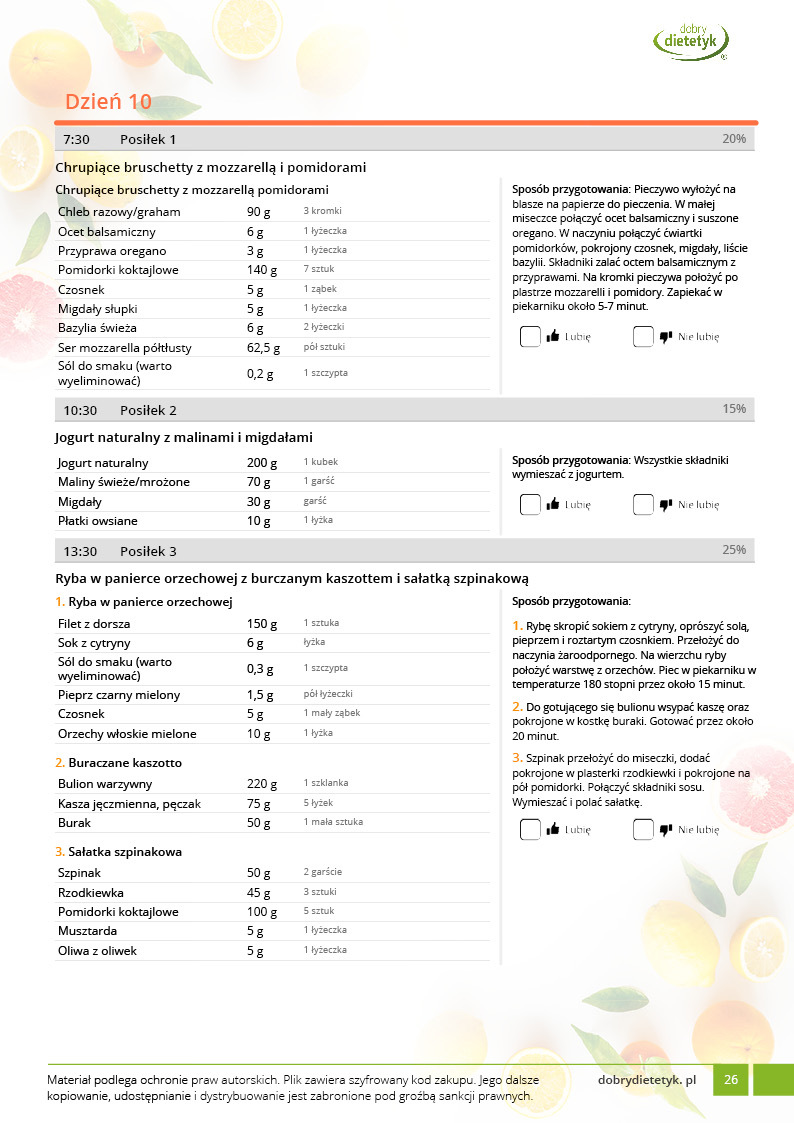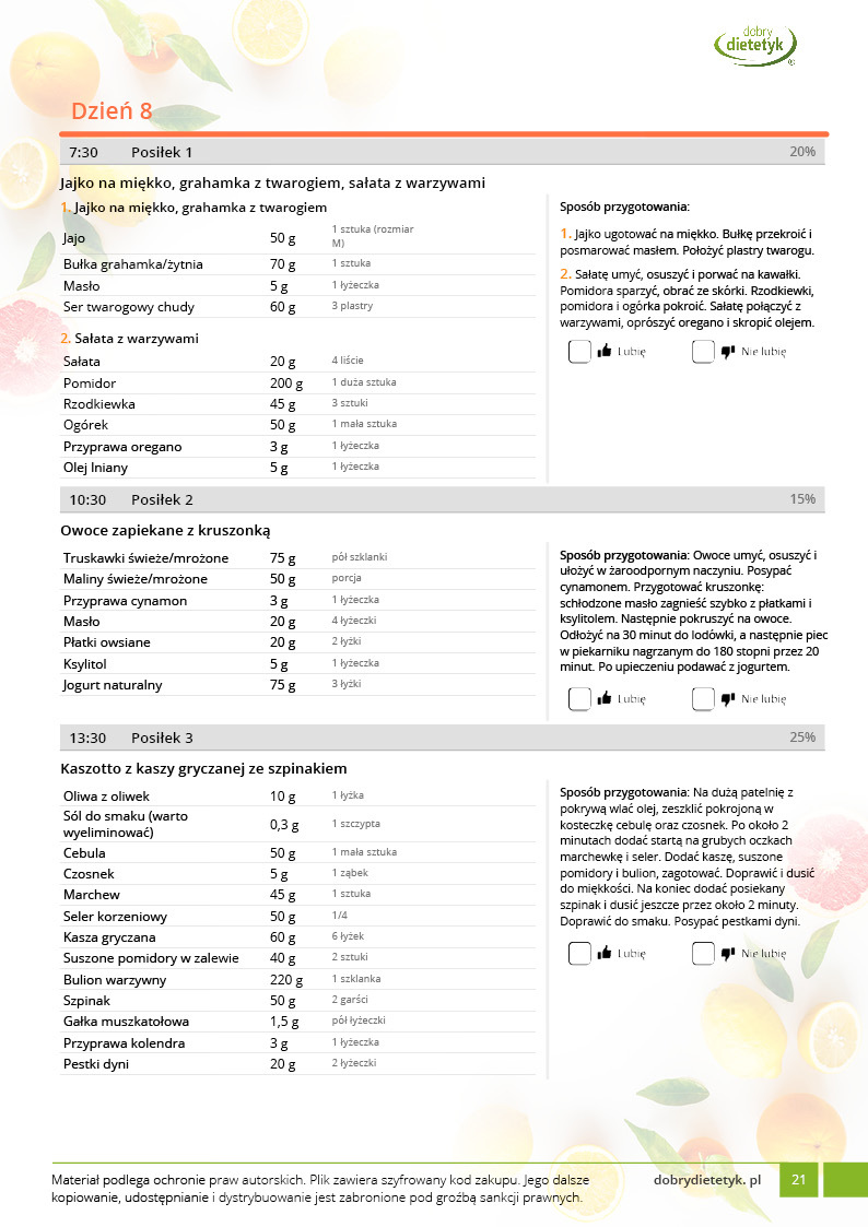 Obok szczegółowego planu dietetycznego otrzymasz również praktyczny poradnik korzystania z opracowanego planu dietetycznego.
