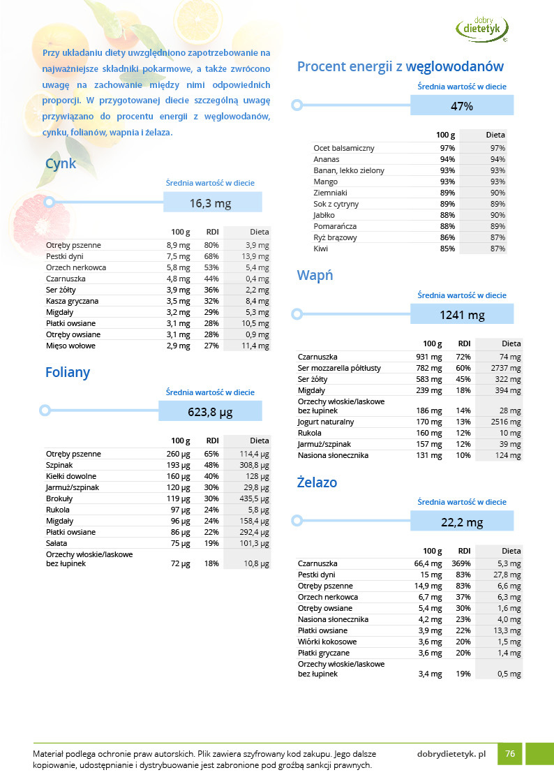Dodatkowo do opracowanego planu dietetycznego otrzymasz atrakcyjnie przygotowane ciekawostki i wiadomości żywieniowe, które mam nadzieję pozwolą Ci zrozumieć wiele spraw związanych z nurtującym Cię problemem, a także przyczynią się do zwiększenia ogólnej wiedzy żywieniowej.