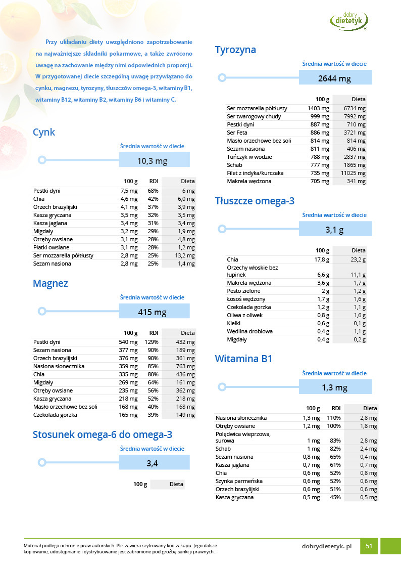 Dodatkowo do opracowanego planu dietetycznego otrzymasz atrakcyjnie przygotowane ciekawostki i wiadomości żywieniowe, które mam nadzieję pozwolą Ci zrozumieć wiele spraw związanych z nurtującym Cię problemem, a także przyczynią się do zwiększenia ogólnej wiedzy żywieniowej.