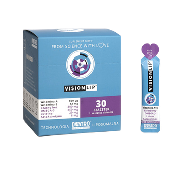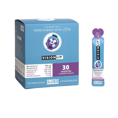 Unikalne połączenie luteiny, astaksantyny, omega-3, czarnego bzu, witaminy A, E i C w postaci żelu liposomalnego.