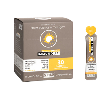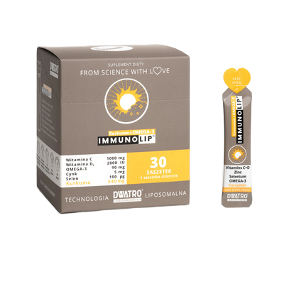 Wysoko przyswajalny kompleks witaminy C i D, kurkuminy, rokitnika, cynku i selenu zamknięty w liposomach w postaci doustnego żelu.