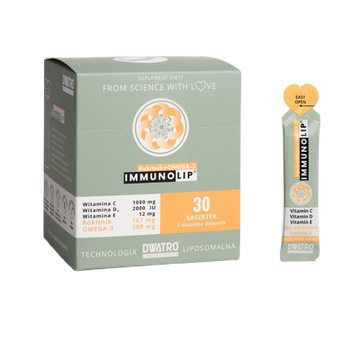Wysoko przyswajalny unikalny kompleks witamin C, D i E w połączeniu z wegańskimi kwasami omega-3 z oleju z mikrolag i rokitnika w technologii liposomalnej.