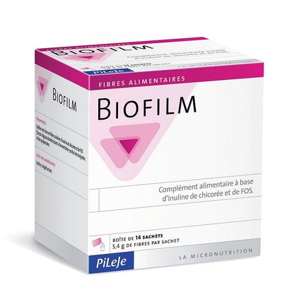 Biofilm to produkt bogaty w błonnik rozpuszczalny, inulinę z cykorii i FOS (fruktooligosacharydy), które wytwarzają maślan i propionian fermentacji. Biofilm może być zalecany w przypadku niezrównoważonej diety błonnika pokarmowego, wspiera terapię stanów zapalnych błony śluzowej jelit. Suplement diety opracowany na podstawie badań naukowych.Rekomendowany do suplementacji w: