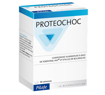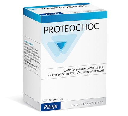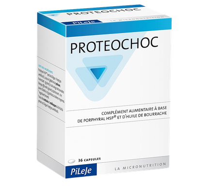 Proteochoc pomaga chronić komórki w czasie stresu. Algi (Porphyra umbilicalis) zawierają antystresowe substancje HSP (heat shock proteins / białka szoku cieplnego), które wspomagają mechanizmy obronne organizmu w sytuacjach m.in. stresu i infekcji.Rekomendowany do suplementacji w: